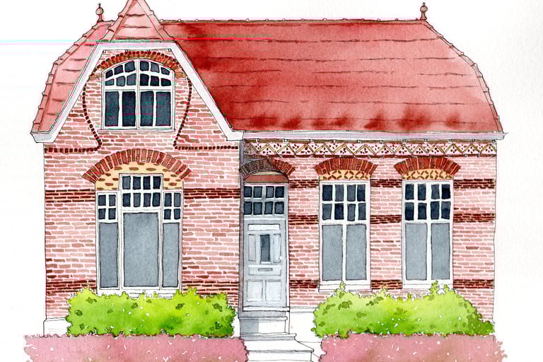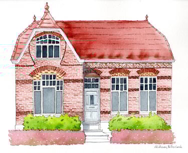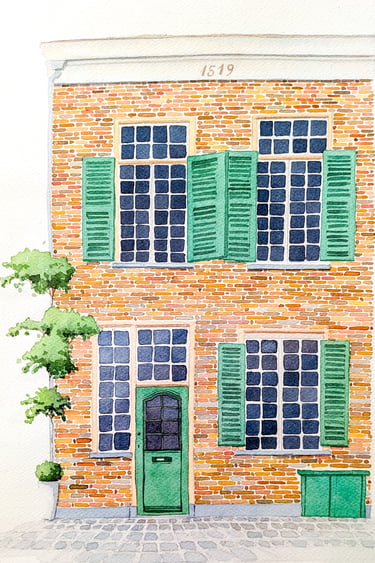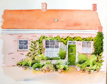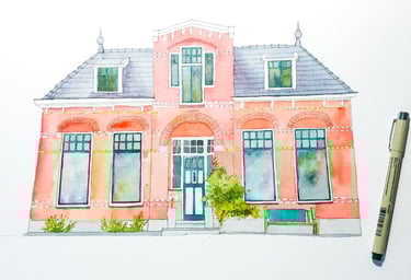 Notre maison c'est notre refuge, le lieu où les enfants et parents se retrouvent, la gardienne de nos souvenirs et secrets. Elle représente des moments de vie passés et futurs. Quoi de mieux qu'une jolie aquarelle de cet endroit partagé de notre famille.